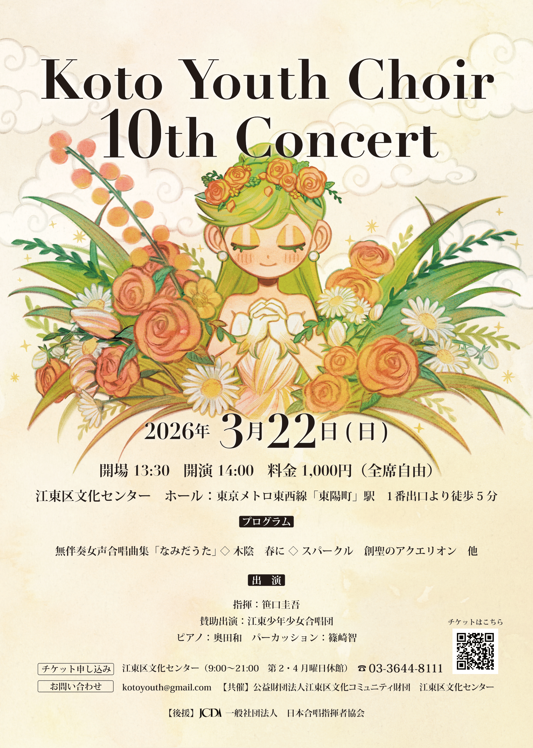 江東少年少女合唱団の子どもたちにも賛助出演していただき、世代を超えたハーモニーで会場を華やかに彩ります。